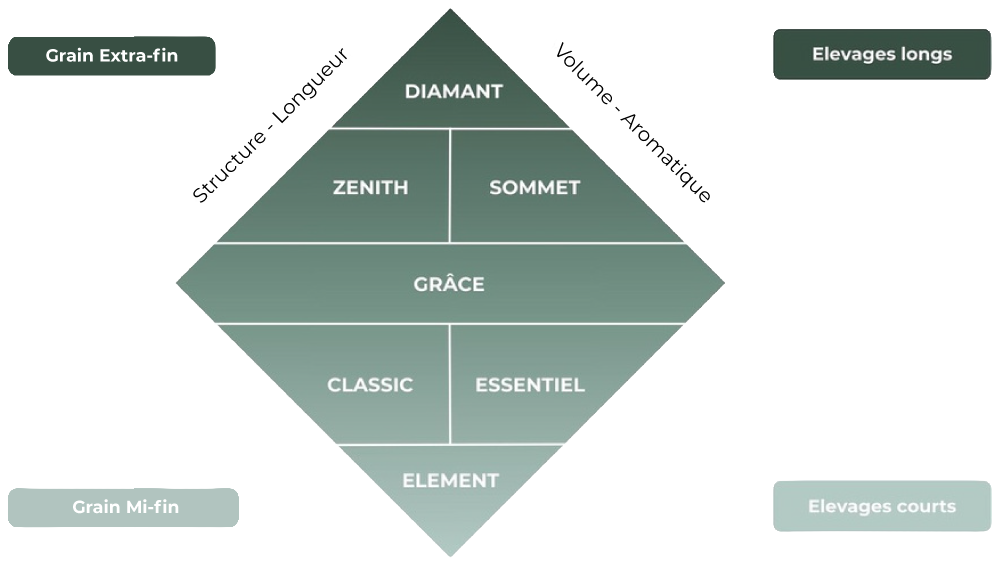 Pour les élevages les plus longs des plus jolis terroirs, finesse et élégance.